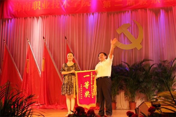 比賽中全體教職工按所屬黨總支及工會類別分成十余個小組,按照相應順序逐次登場表演。各代表隊爭奇斗艷,精彩紛呈。圖書館小組梁棟副院長高亢洪亮的領唱《我愛五指山、我愛萬泉河》激起全場一片歡騰,拉開了本屆紅歌大賽的序幕,此后后勤保衛(wèi)處整齊劃一的“警哥”裝扮、旅游藝術學院代表隊深具時代背景和國際旅游島特色的島服著裝、經(jīng)管學院代表隊的兒童領唱、都在場內(nèi)激起了一陣陣的掌聲,不斷地將本次大會推向高潮。