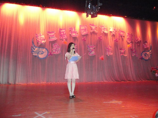 接著,學生社團聯(lián)合會、各協(xié)會,海大社聯(lián)帶來了精彩的演出。我校超越吉他協(xié)會精彩的樂隊演奏引燃現(xiàn)場,現(xiàn)場氣氛頓時高漲起來。御府動漫社的動漫真人表演將我們帶入了奇妙的動漫世界,還有幽默的小品、相聲,還有來自海大社聯(lián)帶來的朗誦舞蹈表演。最刺激的數(shù)輪滑協(xié)會帶來的輪滑表演了,通過與現(xiàn)場觀眾的互動的形式,帶來了十分刺激精彩的表演。現(xiàn)場互動環(huán)節(jié)中,對社團投票的同學就有機會抽到獎品啦,不過,還要回答問題,答對有獎。抽獎嘉賓是許昌斌老師,本著對選票保持公開、公平、公正的態(tài)度,有些不合格選票的同學無緣參與抽獎。整個活動現(xiàn)場氣氛十分活躍。整場晚會的文藝表演展現(xiàn)了社團文化的精彩,展現(xiàn)了繽紛多彩的社團文化節(jié)。